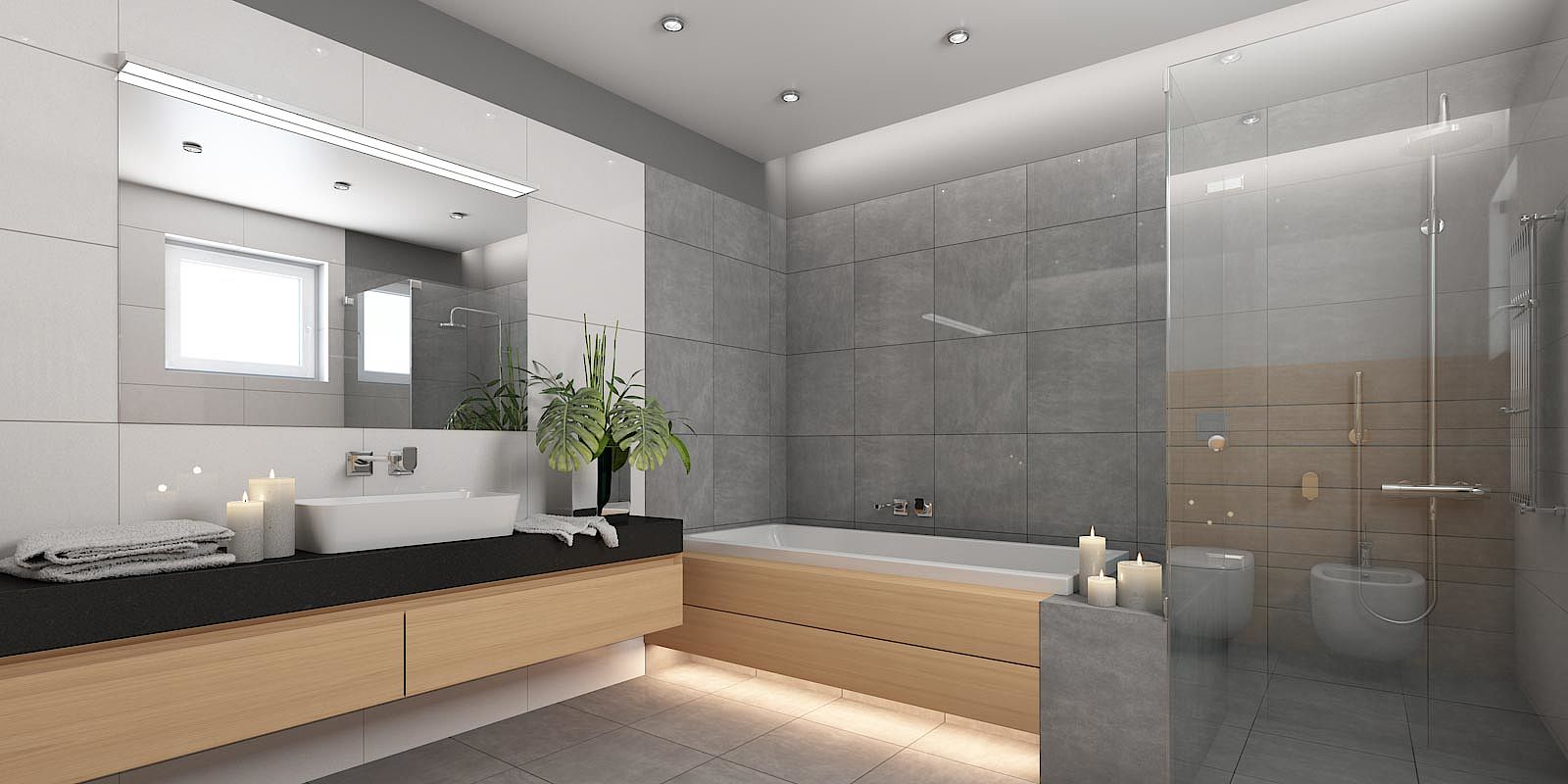 Ein hoher Blauanteil Ihrer Waschtischbeleuchtung zum Beispiel, sorgt für jede Menge Energie und einen guten Start in den Tag. Deckenstrahler mit einer Milchglasabdeckung als Blendschutz verhindern, dass Sie beim Wannenbad geblendet werden. Mit einem ausgereiften Beleuchtungskonzept setzen unsere Badprofis besondere Akzente in Ihrem Bad und sorgen für die entspannte Wohlfühlatmosphäre.