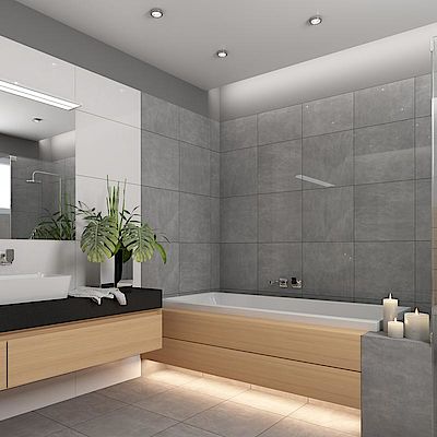 Ein ausgereiftes Beleuchtungskonzept im Bad sorgt dafür, dass Sie es zu jeder Tageszeit und für jeden Bedarf in die passende Lichtstimmung tauchen können. Für optimale Beleuchtung Ihres neuen Bads sind daher mindestens drei Lichtquellen nötig. Denken Sie daher schon vor der Sanierung über eine stimmungsvolle Deckenbeleuchtung, viel Licht am Waschtisch zur Beleuchtung des Spiegels sowie mindestens eine indirekte Lichtquelle nach.